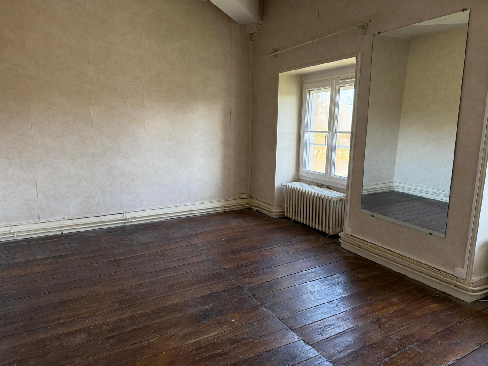 Accolé à la maison principale, un logement indépendant à rafraichir de 70 m² comprenant trois pièces, WC, salle d’eau, chauffage gaz de ville et une cour. Accès indépendant.