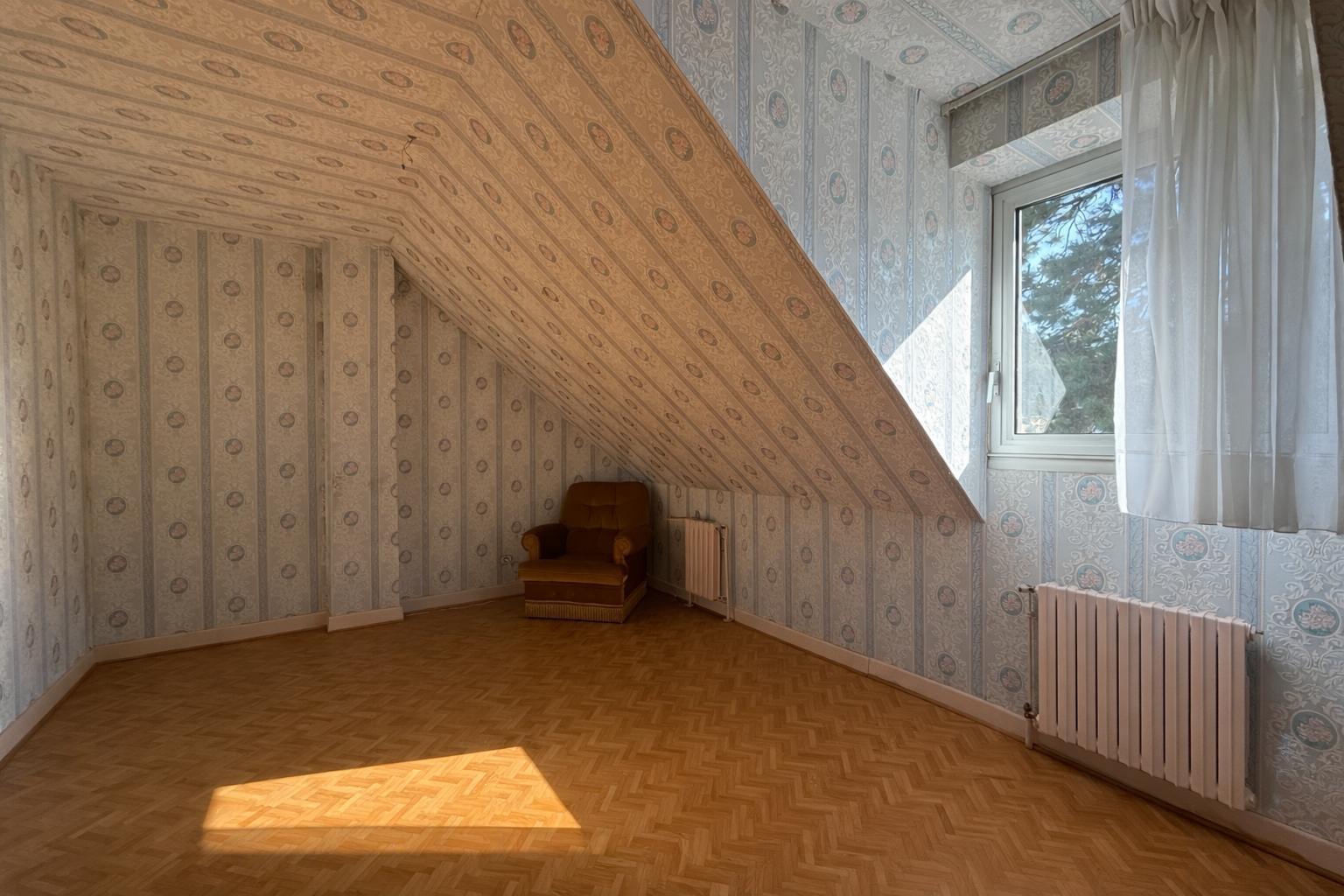 Au demi-étage : une chambre avec rangements.
