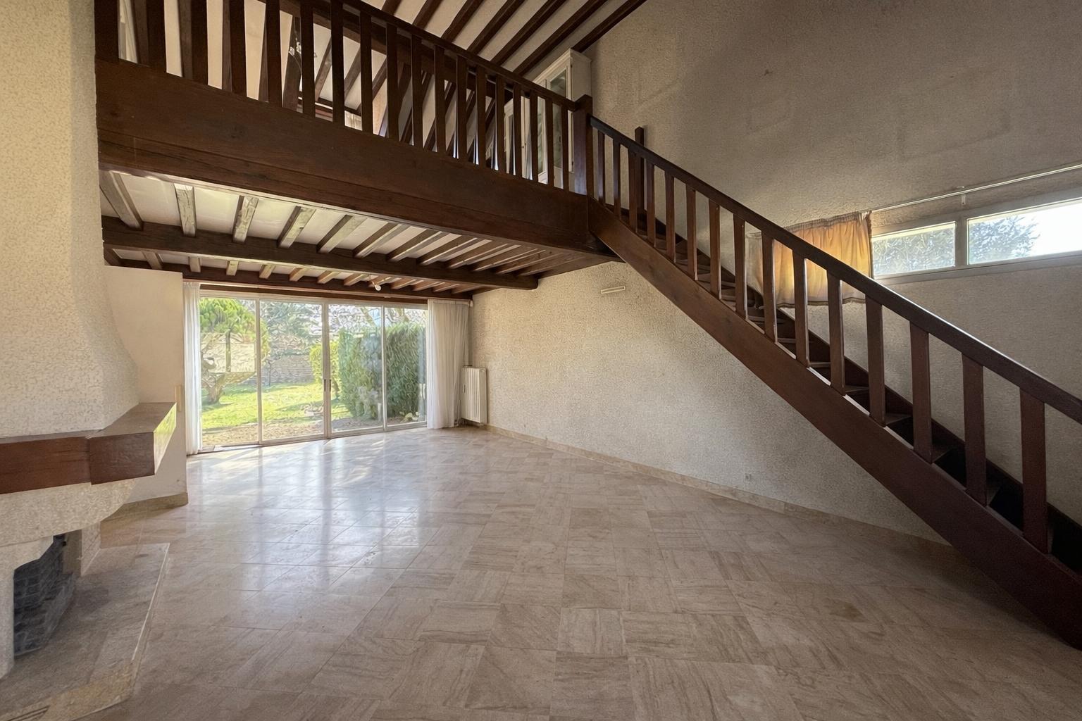 À l’étage se trouve deux chambres, placards, une salle de bain, un WC, et une mezzanine offrant un espace supplémentaire (bureau, coin lecture, salle de jeux) accessible également depuis le salon.